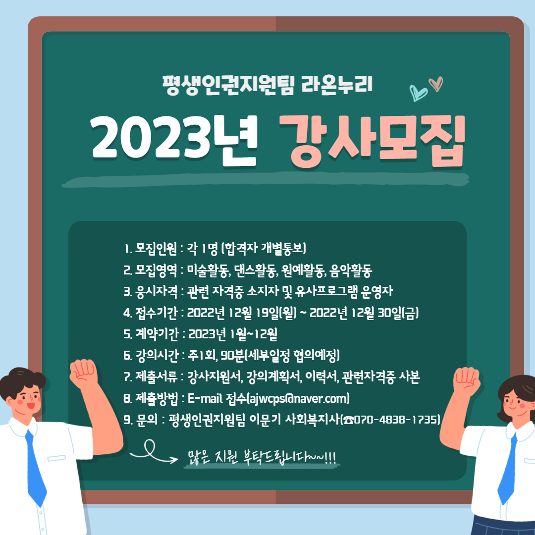 2023년 평생인권지원팀 라온누리 프로그램 강사모집