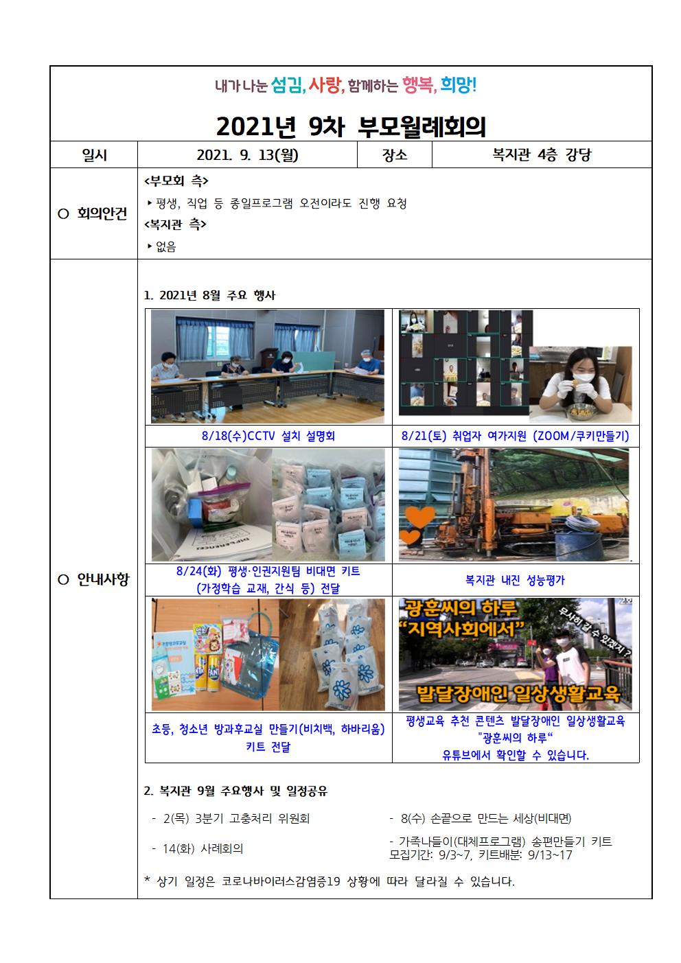 2021년 9차 부모월례회의 안건