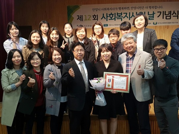 특별히 이번 기념식에서 지역사회지원팀 윤은정 선생님께서 안양시의화의장상을 수여하셨는데요.