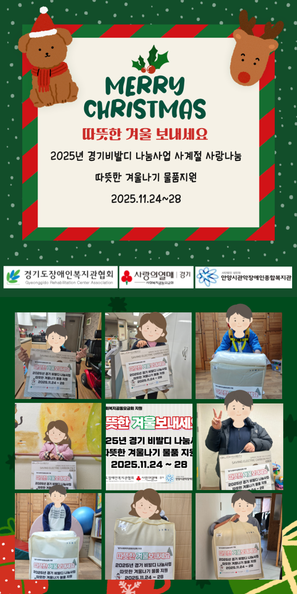 따뜻한 겨울나기물품은 경기비발디 사계절 사랑나눔사업으로 경기도장애인복지관협회와 경기사랑의열매로부터 지원받아 제공하였습니다.