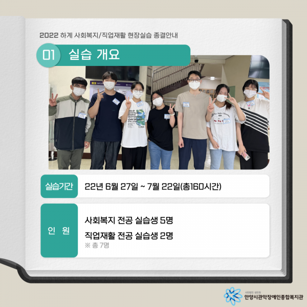 목록 2022년 하계 사회복지/직업재활 실습 종결안내 페이지 정보 운영자 조회 1,166 입력 2022-08-02 13:24 댓글 0 본문 2022년 6월 27일(월) ~ 7월 22일(금) 총 160시간의 사회복지/직업재활 현장실습을 진행했습니다. 현장속에서 배우고자 노력한 시간이 도움되었길 바라며 실습생 여러분 모두 수고했습니다. 앞으로도 응원하겠습니다. 현장에서 만나요~! 목록 이전글2022년 권익옹호 - 인권교육(2차) 실시 2022.08.02 다음글우리, 함께! 관악서포터즈 3차회의 2022.08.02 댓글 0 댓글목록 등록된 댓글이 없습니다.