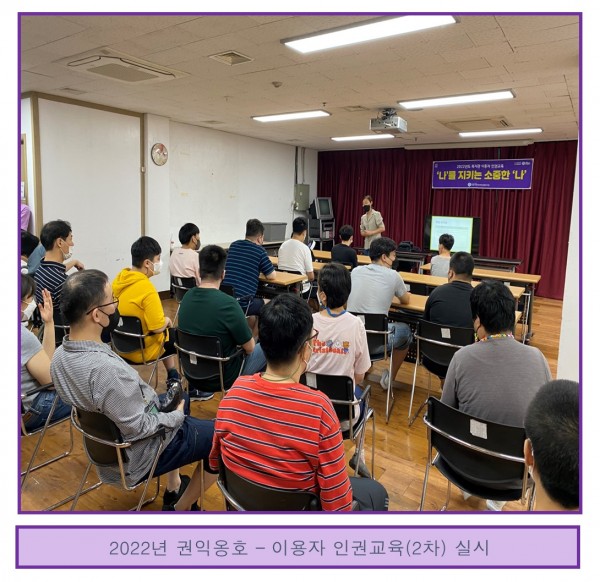 2022년 7월 21일(목) 오전 10시 복지관 다목적실에서 복지관 이용자 대상 2차 인권교육을 실시하였습니다.