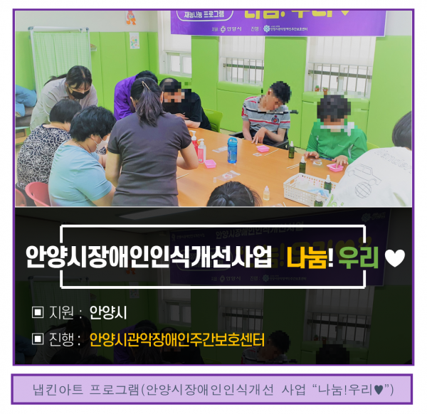안양시장애인인식개선사업 "나눔!우리❤" 을 진행하고 있습니다.