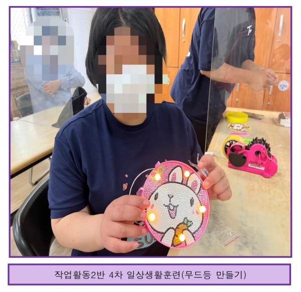 2022년 6월 9(목) 작업활동2반 일상생활훈련의 일환으로 무드등 만들기 진행하였습니다.