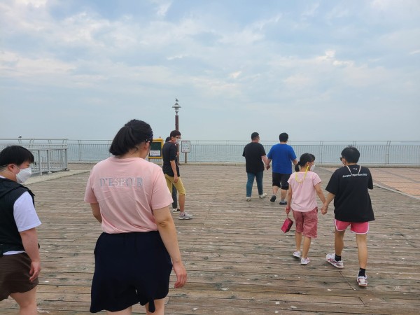 휴게소 도착 후 바다를 보며 산책을 하였고, 휴게소에서 판매하는 메뉴를 알아보고 선택하여 간식거리를 구매하여 먹는 시간을 가졌습니다.