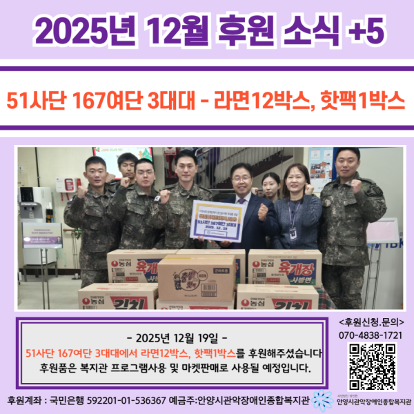 후원해주신 51사단 167여단 3대대에 감사의 마음♥을 전합니다