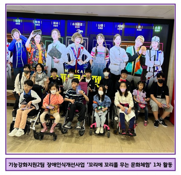 기능강화지원2팀에서는 5월 13일 장애인식개선사업으로 비장애청소년 6명과 뇌병변,지체 장애인6명을 매칭하여 서울세종문화회관 뮤지컬 공연 및 대한민국역사박물관 관람을 하였습니다.