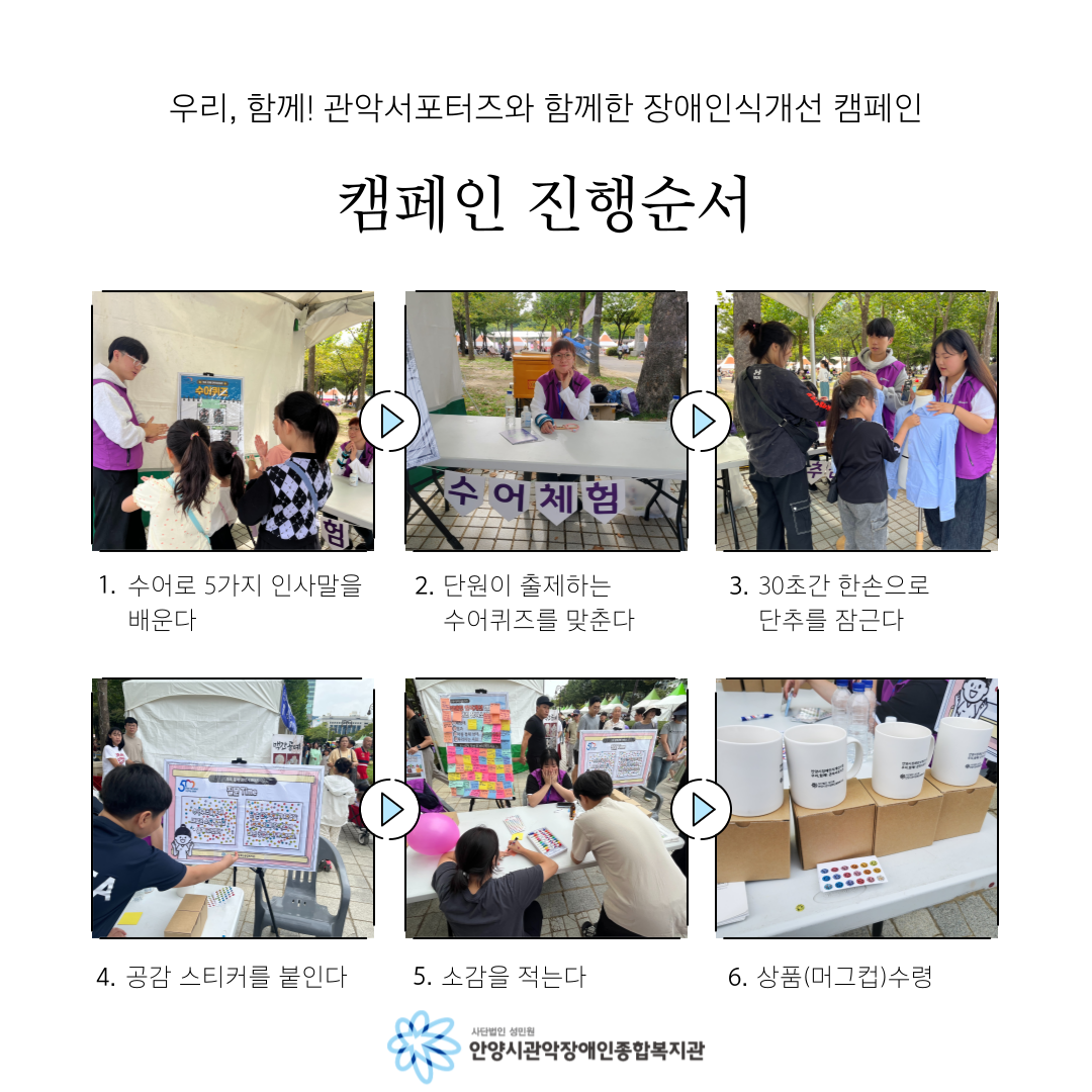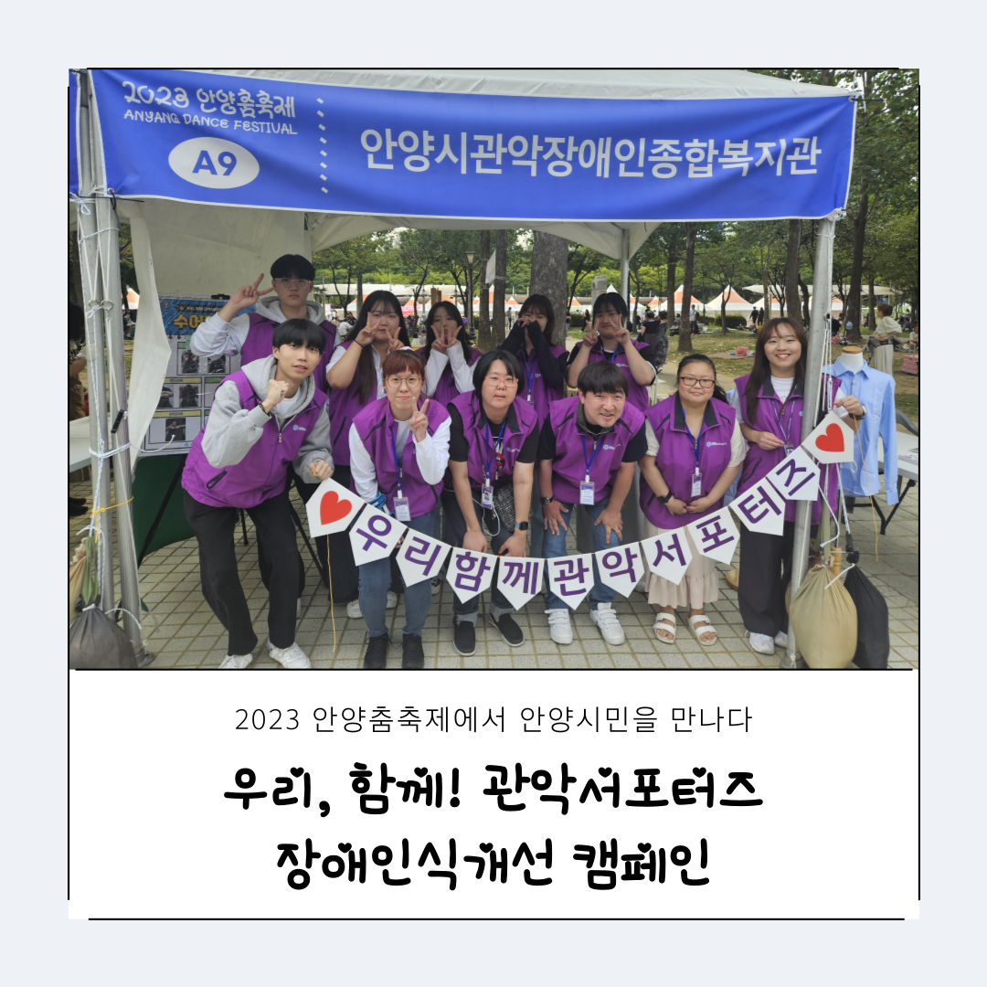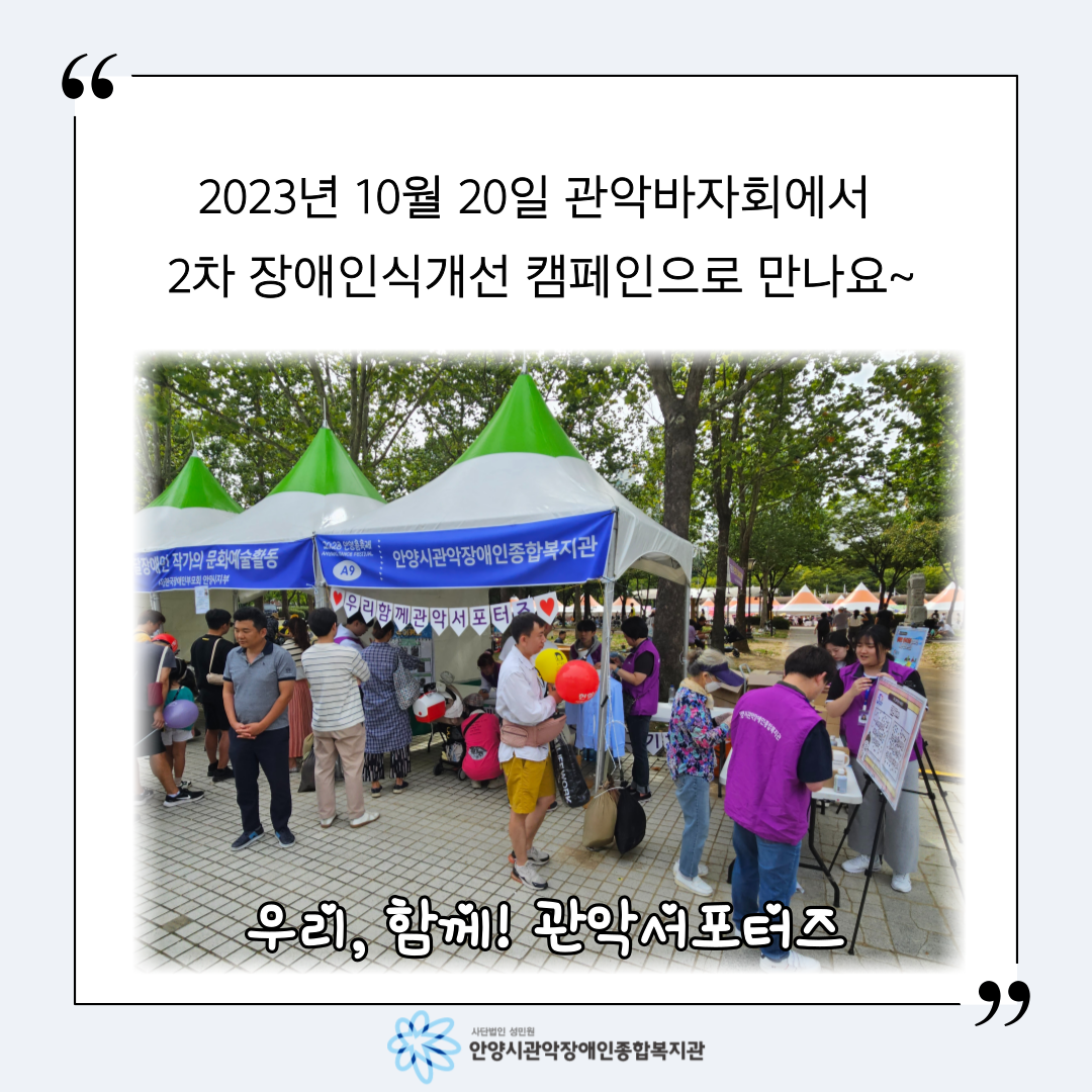 2023년 9월 24일 안양시민축제에서 우리, 함께! 관악서포터즈 단원들이 지역주민들을 대상으로 장애인식개선 캠페인을 진행했습니다