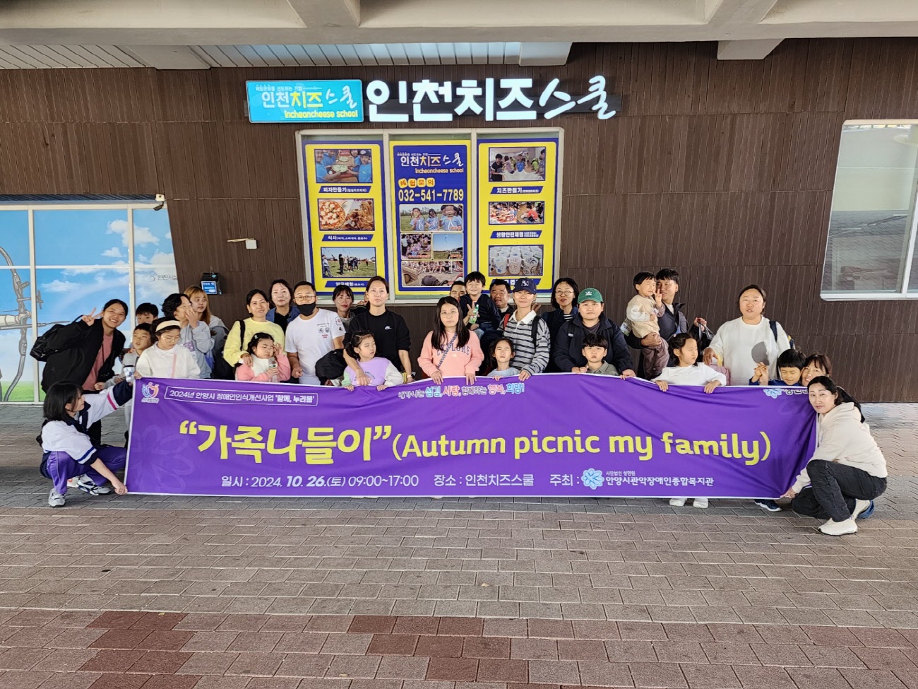 기능강화지원1팀에서 장애인식개선사업 함께, 누리봄!’에서 1026일 토요일 인천치즈스쿨과 계양 꽃마루로 사회성기술교육 및 인지교육 이용자 13가족(34), 직원 및 보조 인력 9(43) 함께하여 가족나들이를 다녀왔습니다. 바쁜 일상에서 잠시간 여유와 가족 및 친구들이 웰빙 치즈가 무르익는 치즈스쿨에서 치즈와 피자 만들기, 디폼 블록 열쇠고리 제작, 버블 놀이, 뻥튀기 체험 등의 새로운 경험의 기회를 가졌고 다양한 활동 과정에서 행복의 주인공이 될 수 있었습니다. 함께한 비장애 친구들과 자연스럽 통합의 기회가 되었고 계양꽃마루에서 코스모스가 피어있는 산책로를 따라 풀벌레 소리를 들으며 가족과 함께 가​을을 만끽할 수 있었습니다. 다양한 체험활동을 통한 문화교류로 가족 간의 자연스러운 신체적ㆍ정서적 상호작용의 기회가 주어졌으며 장애-비장애 아동들이 서로 다르지 않음을 알고 장애에 대한 인식개선 및 가족 구성원의 역량을 강화할 수 있는 유익한 시간이었다.