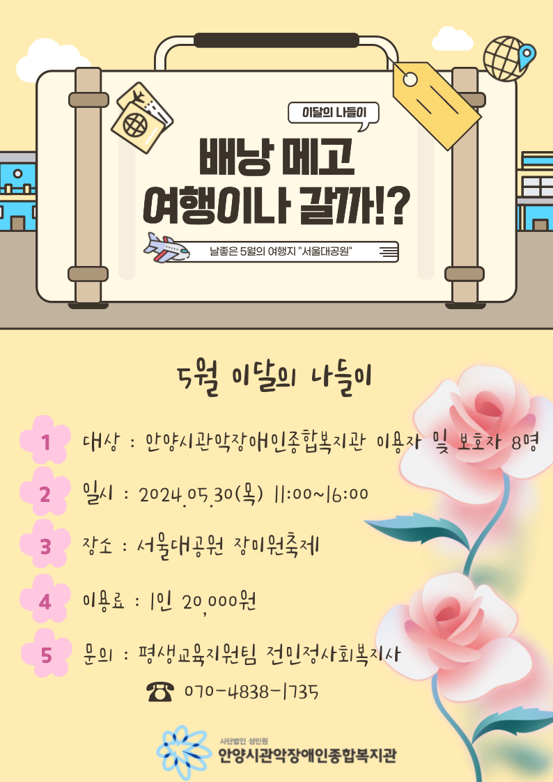 안양시관악장애인종합복지관의 5월달 나들이 소식 전해드립니다.