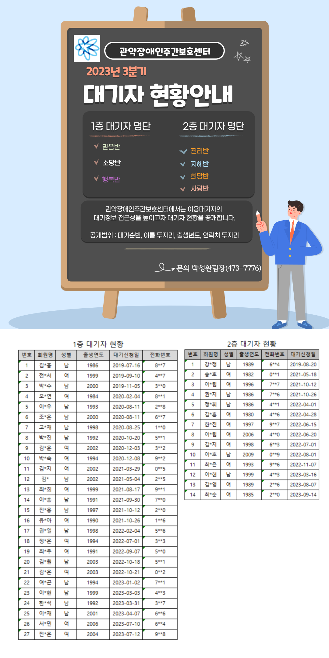 2023년 3분기 대기자 현황(관악장애인주간보호센터) > 공지사항