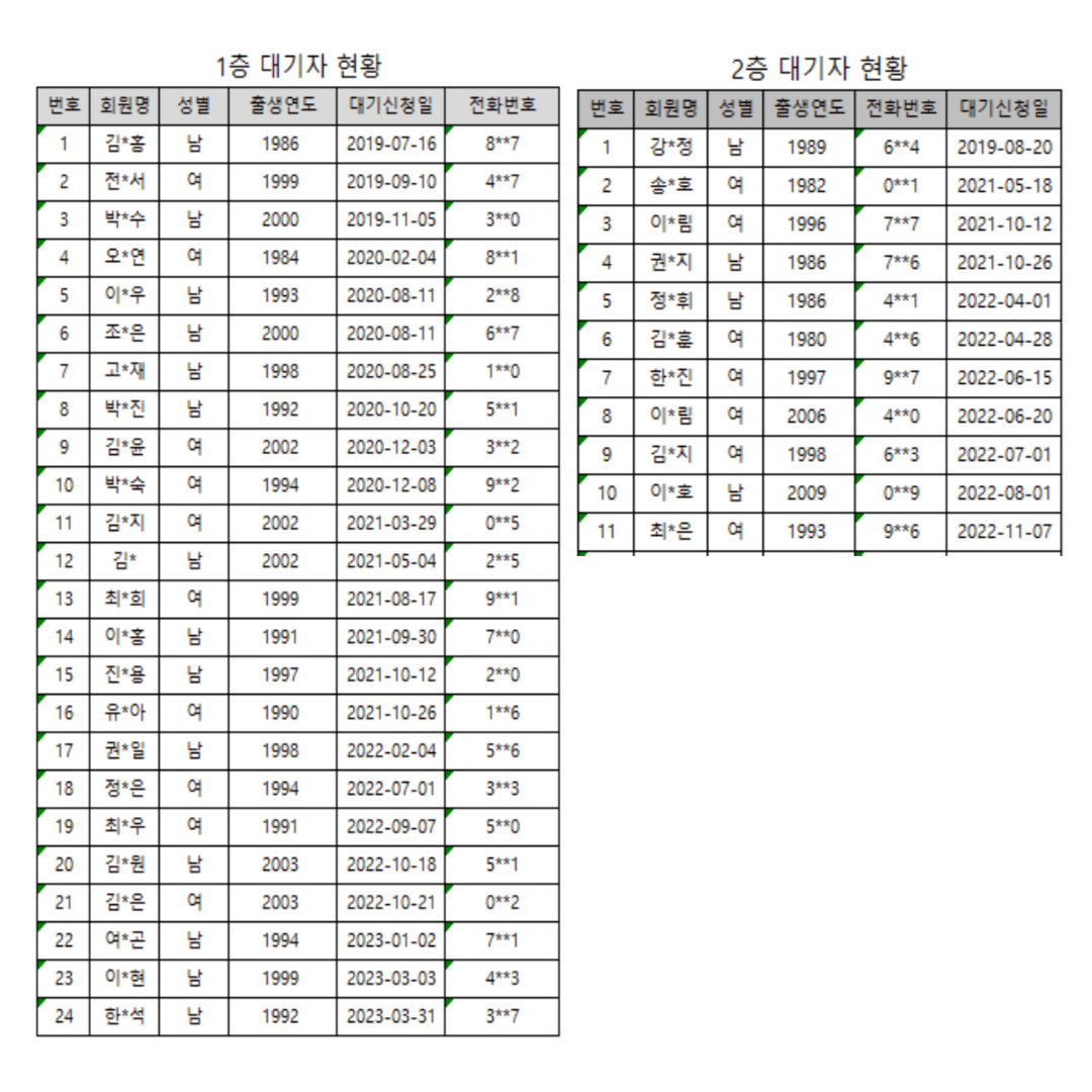 2023년 2분기 대기자 현황(관악장애인주간보호센터)입니다.