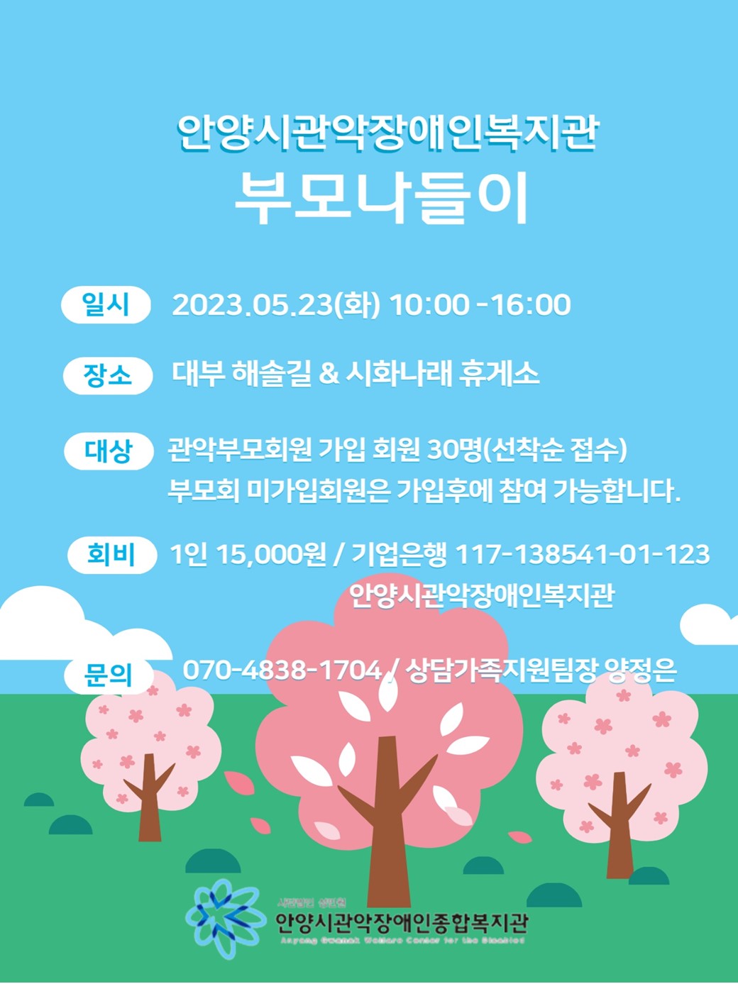 3. 참가비 : 1만5천원(복지관 납부 및 계좌입금: 기업은행/ 안양시관악장애인복지관 117-138541-01-123)
