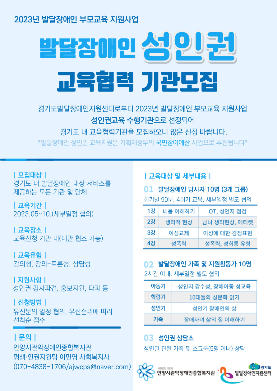 2023년 발달장애인 성인권 부모교육 지원사업 교육협력 기관 모집