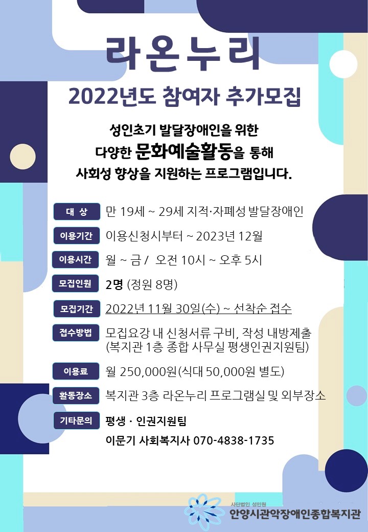 문의 : 평생인권지원팀 이문기(070-4838-1735)