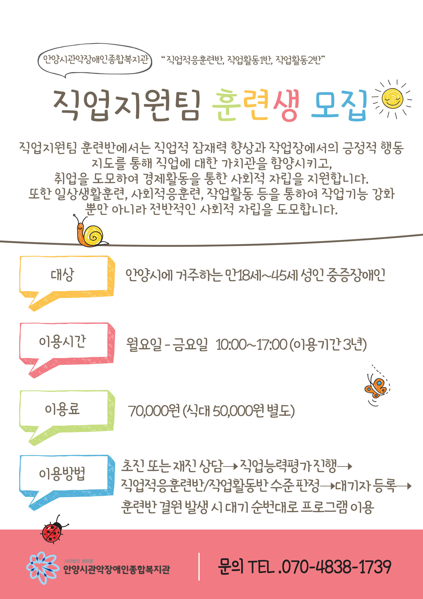 4. 문의사항: 최하나 장애인재활상담사 070-4838-1739