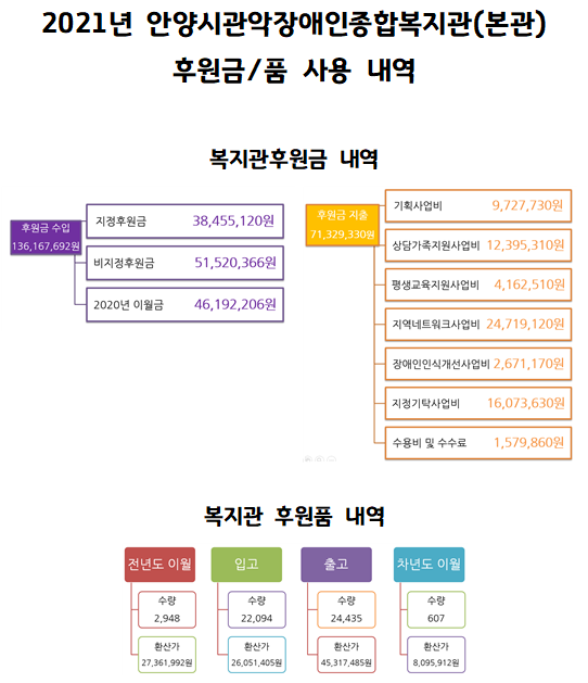 2021년 안양시관악장애인종합복지관(본관) 후원금/품 사용내역 결과 공고