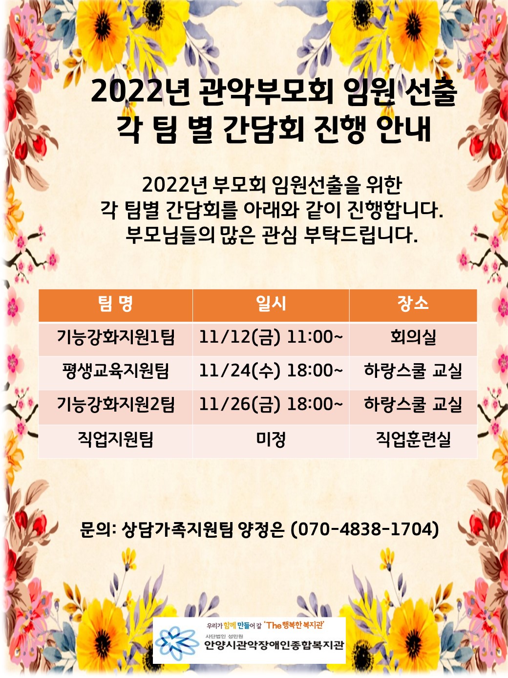 2022년 부모회 임원 선출 관련 간담회 일정을 안내합니다.