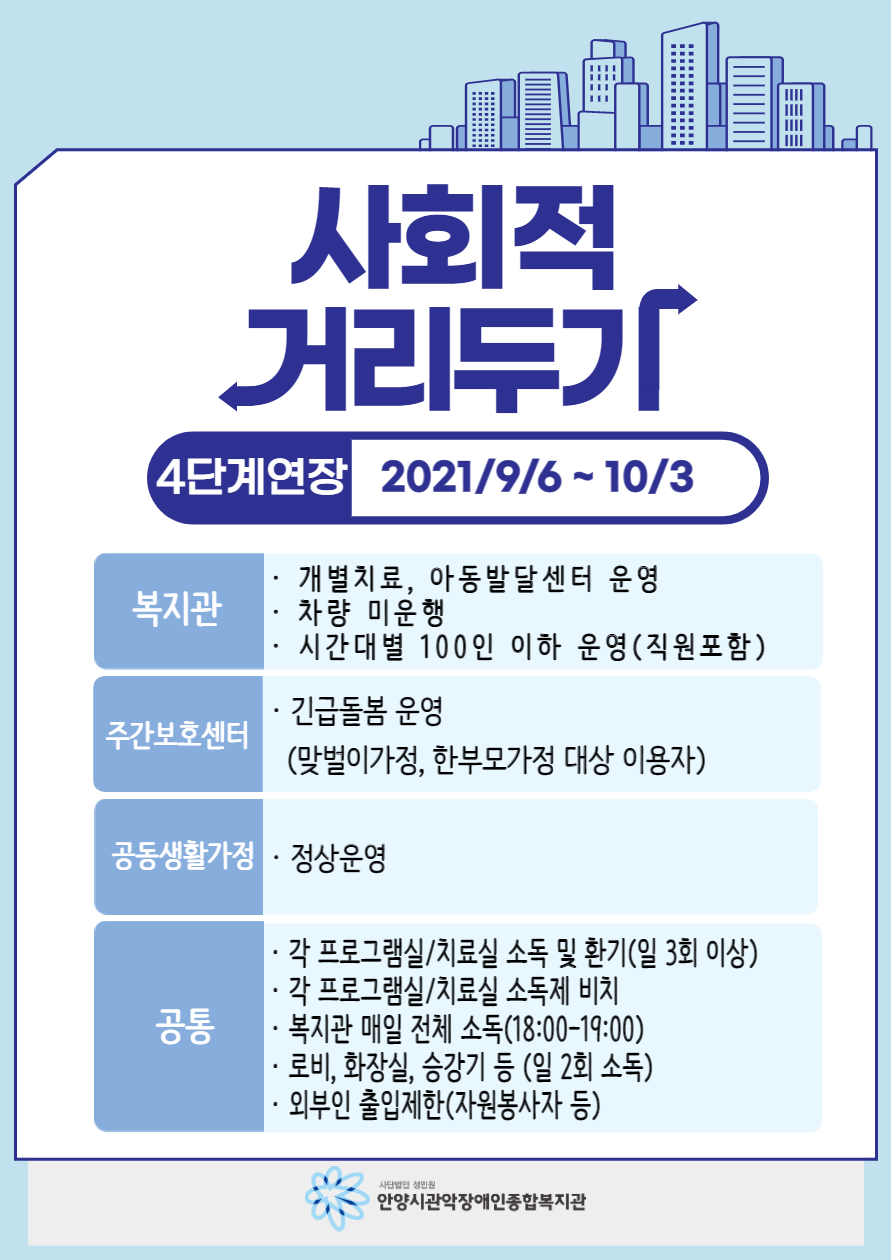 코로나19 사회적거리두기 4단계 연장에 따른 운영계획(9/6~10/3) > 공지사항
