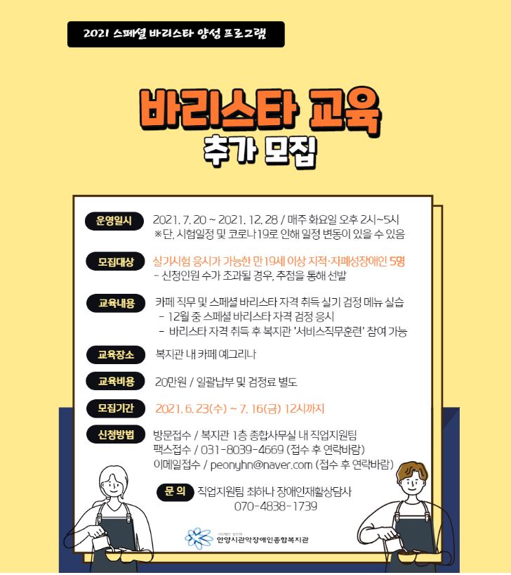2021년 바리스타교육 참여자 추가모집