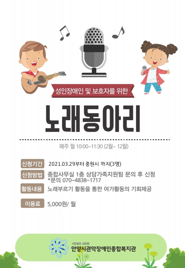 상담가족지원팀 노래동아리 이용자 추가 모집합니다.