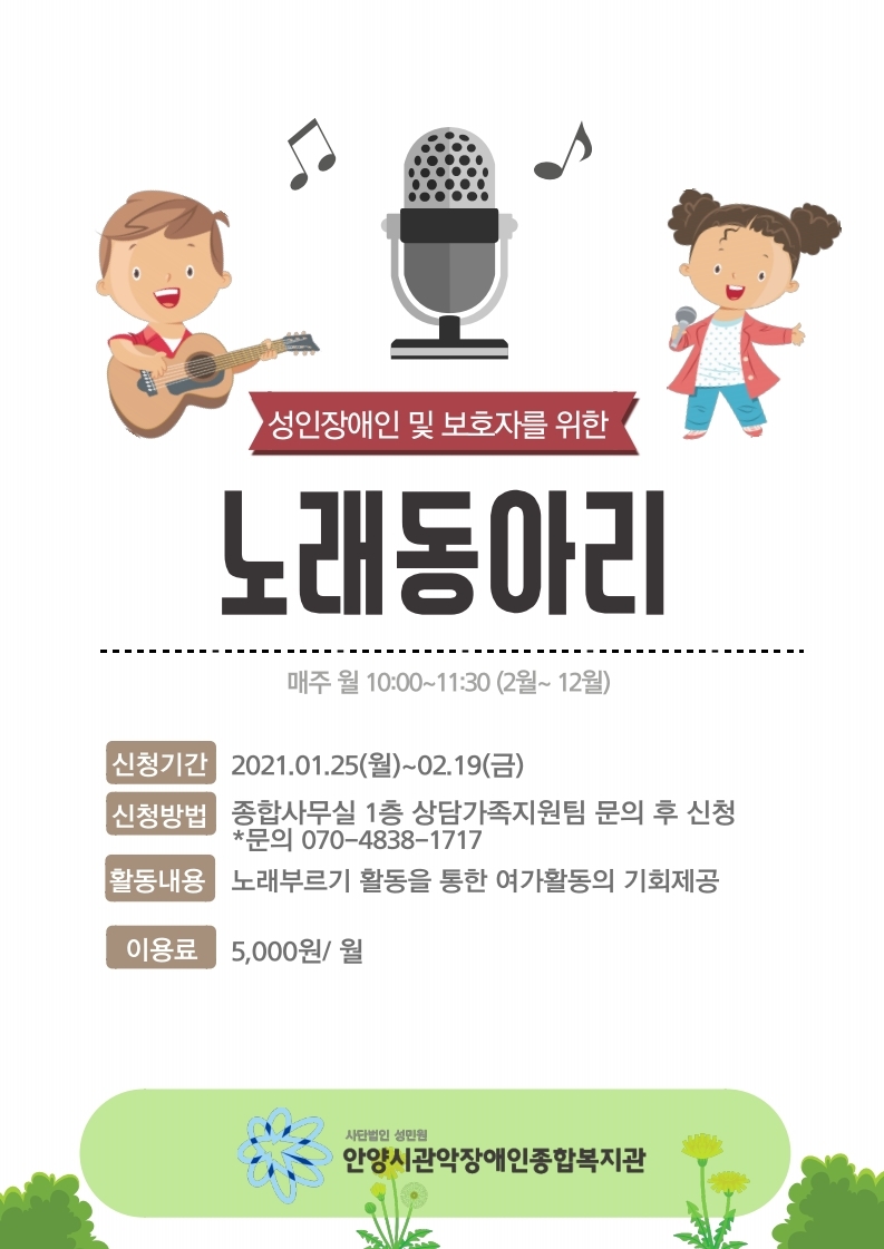 상담가족지원팀 노래동아리 이용자 모집 안내 > 공지사항