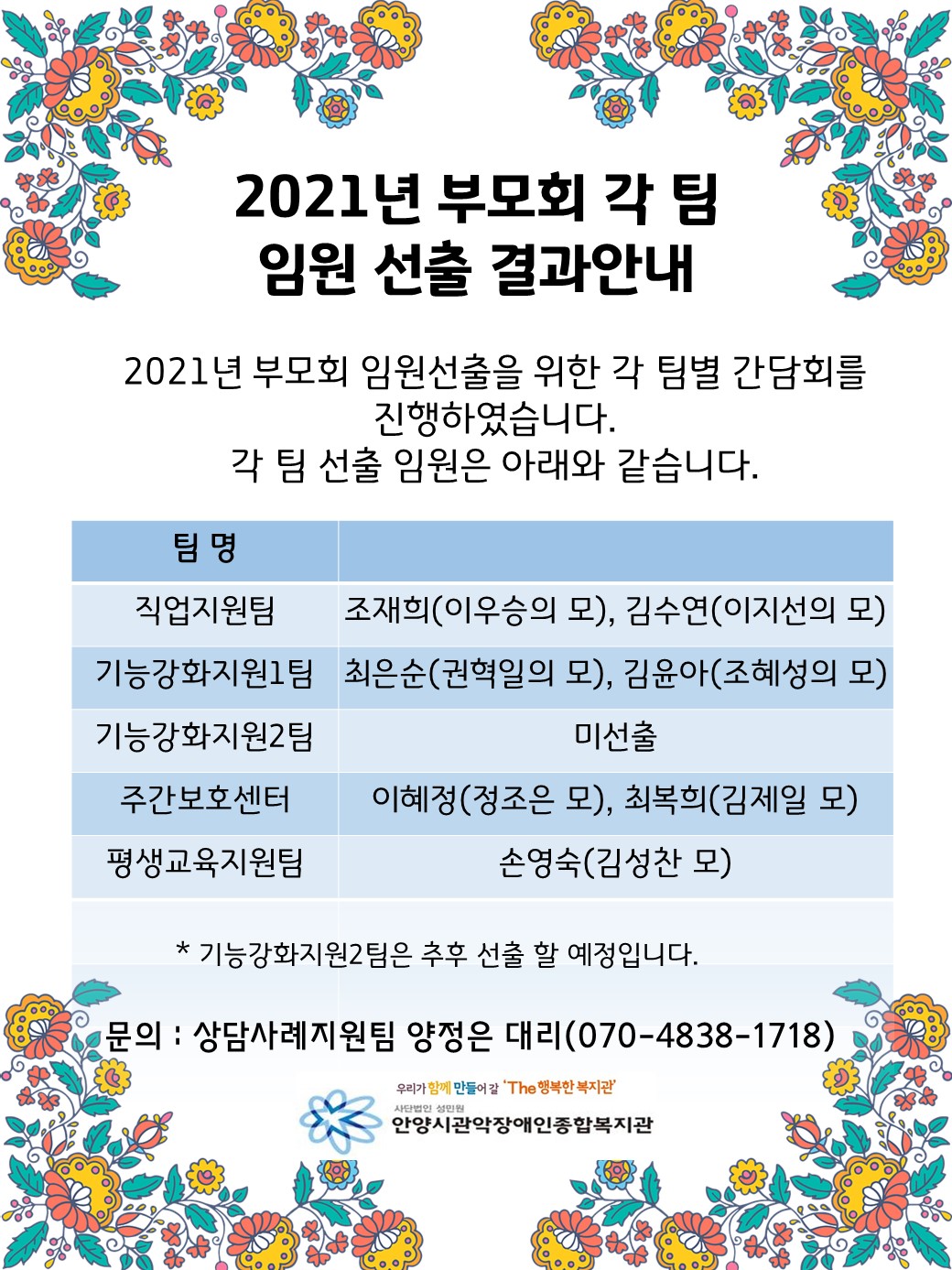 2021년 각 팀 부모회 임원선출결과를 안내합니다.