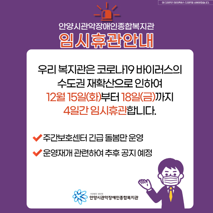 복지관 임시 휴관 안내