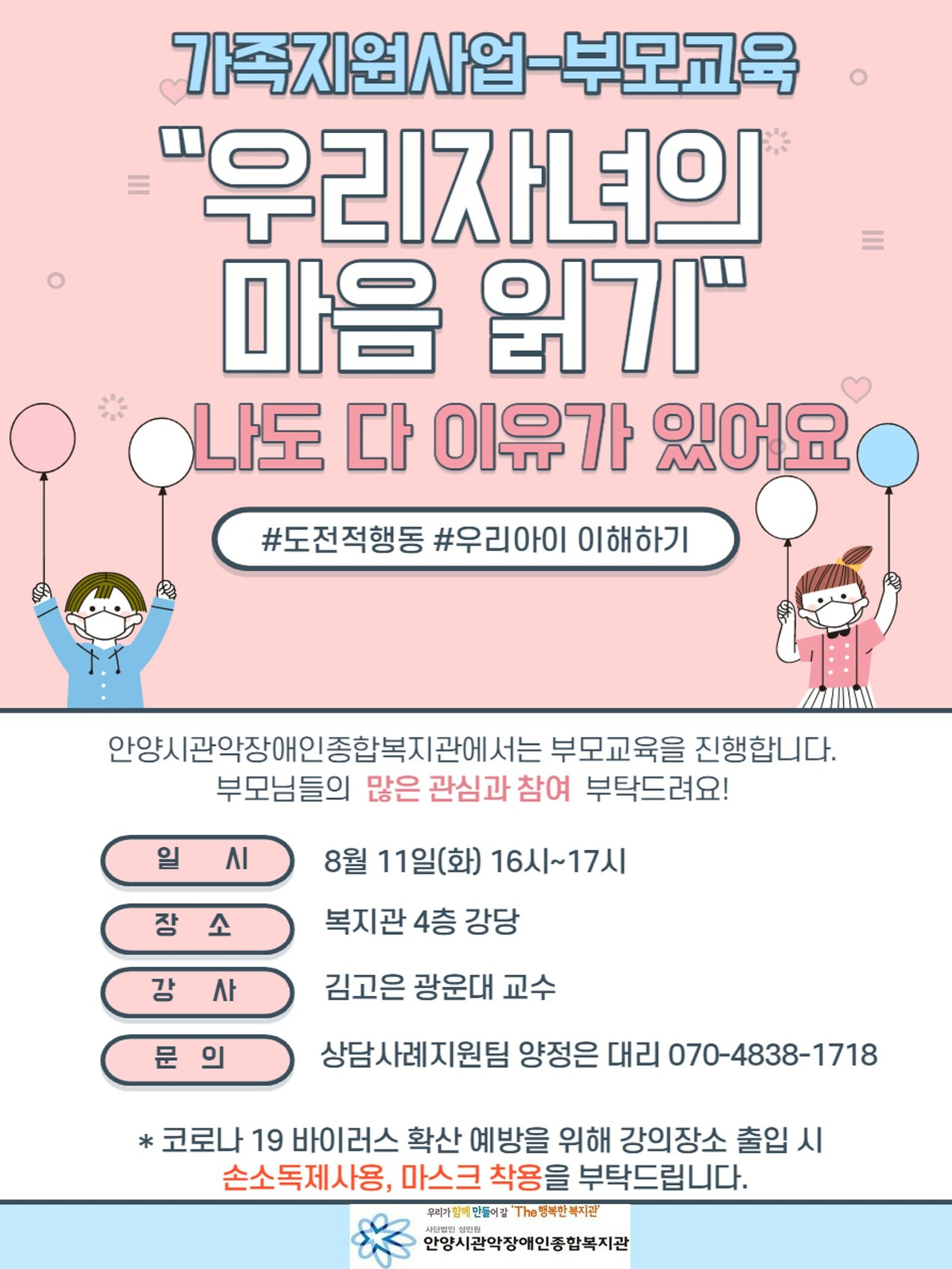 2020년 부모교육을 진행합니다. 여러분의 많은 관심과 참여 부탁드립니다.