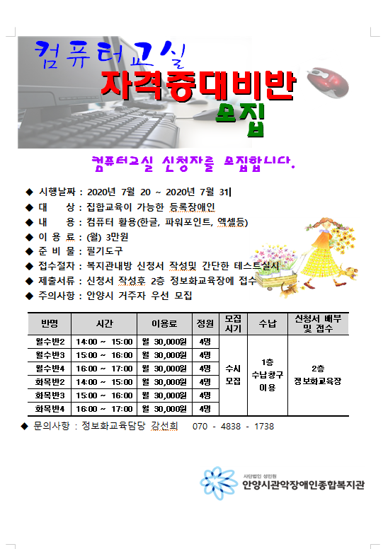 2020년 컴퓨터교실 7월 이용자 모집 안내 > 공지사항