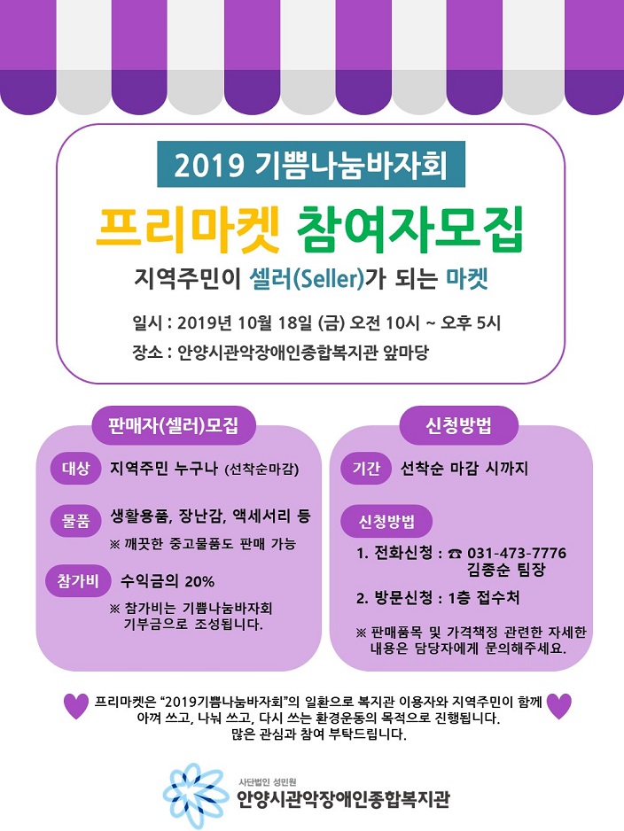 2019 기쁨나눔바자회 프리마켓 참여자모집