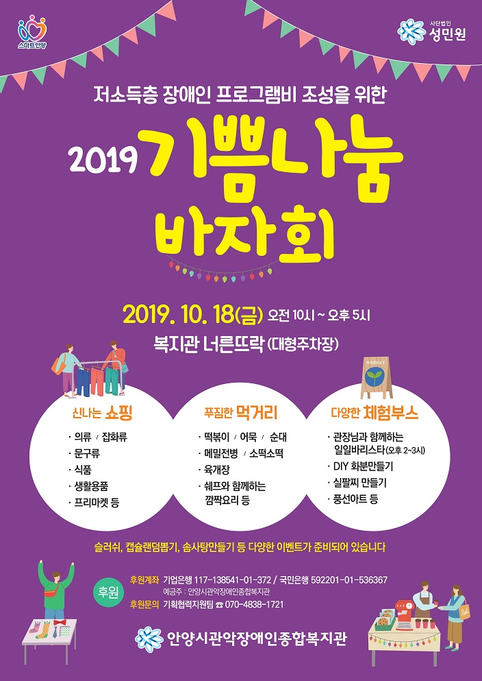 2019 기쁨나눔바자회 프리마켓 참여자모집
