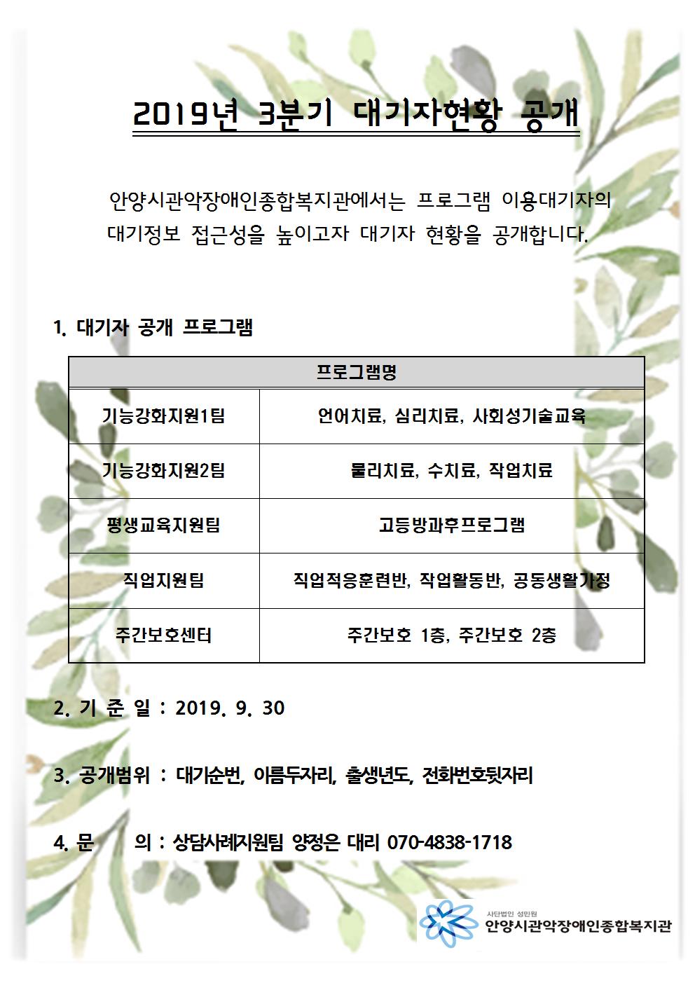 않는 경우 대기자 명단에서 삭제되오니 연락처, 주소변경, 이사 등 개인정보가 변경되었을 시 반드시 상담사례지원팀으로 연락바랍니다. (070-4838-1718)