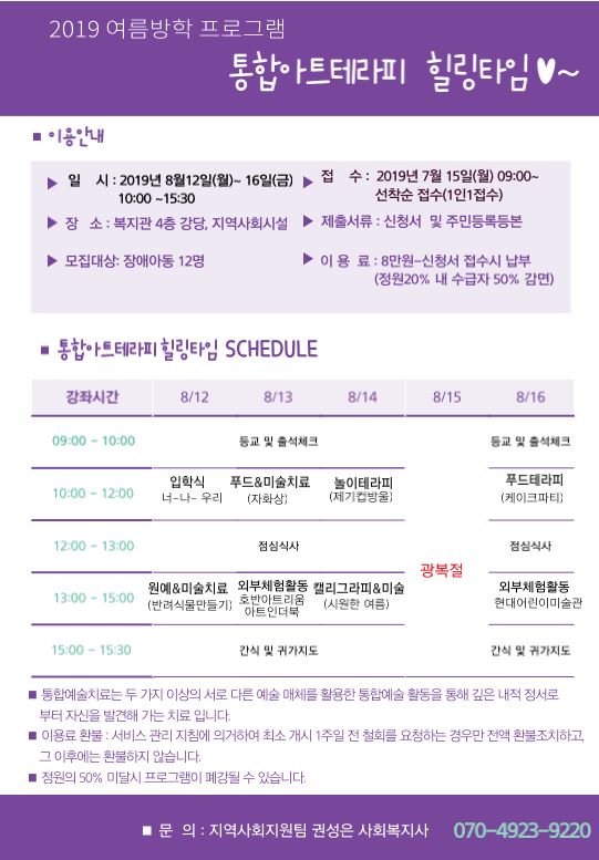 2019년도 여름방학 프로그램(통합아트테라피) 이용자 모집