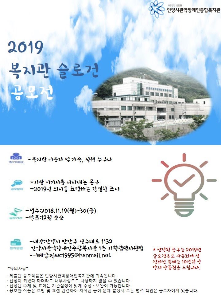 2019 복지관 슬로건 공모를 실시합니다.