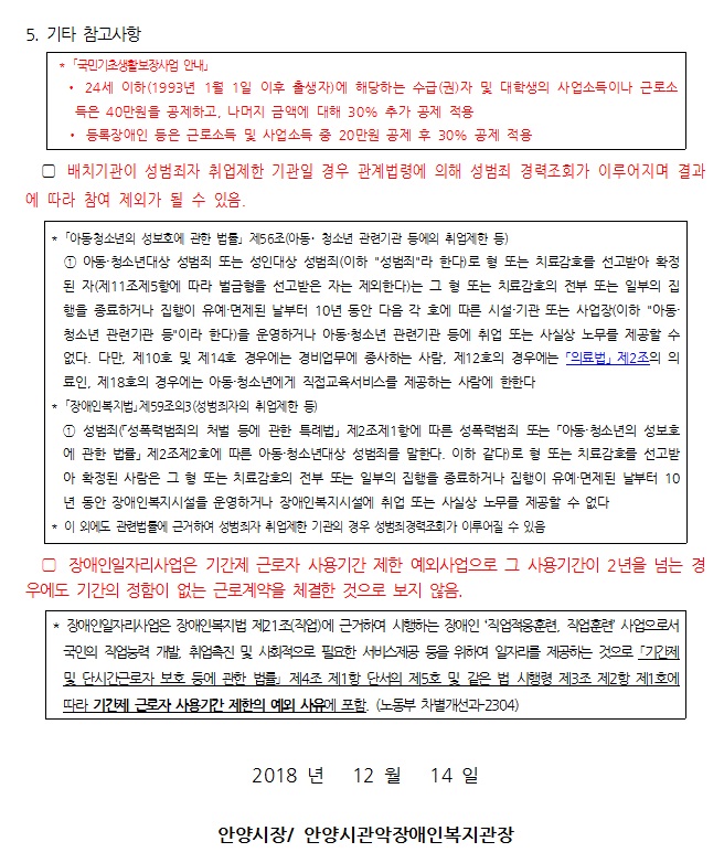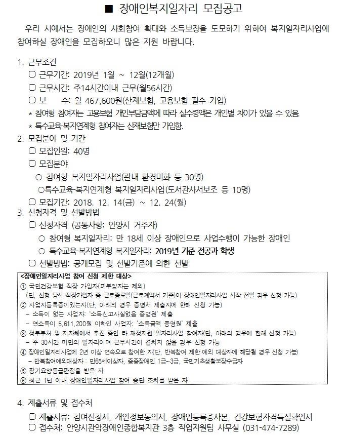2019년 장애인복지일자리 모집 공고 > 공지사항