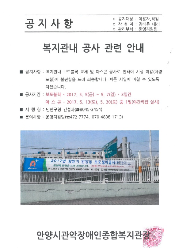 복지관내 공사 관련 안내