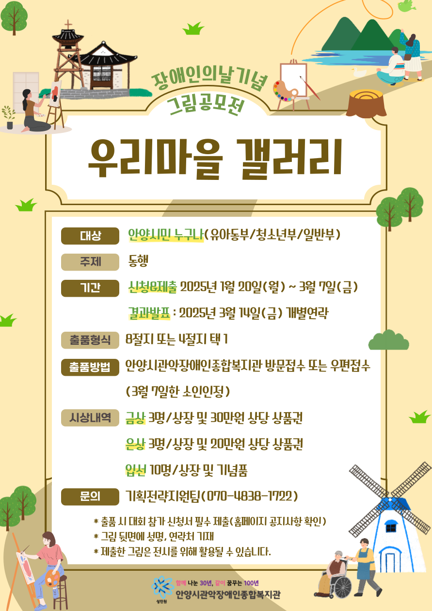 안양시관악장애인종합복지관에서 제 45회 장애인의 날을 기념하여 그림대회 '우리 마을 갤러리'를 진행합니다.