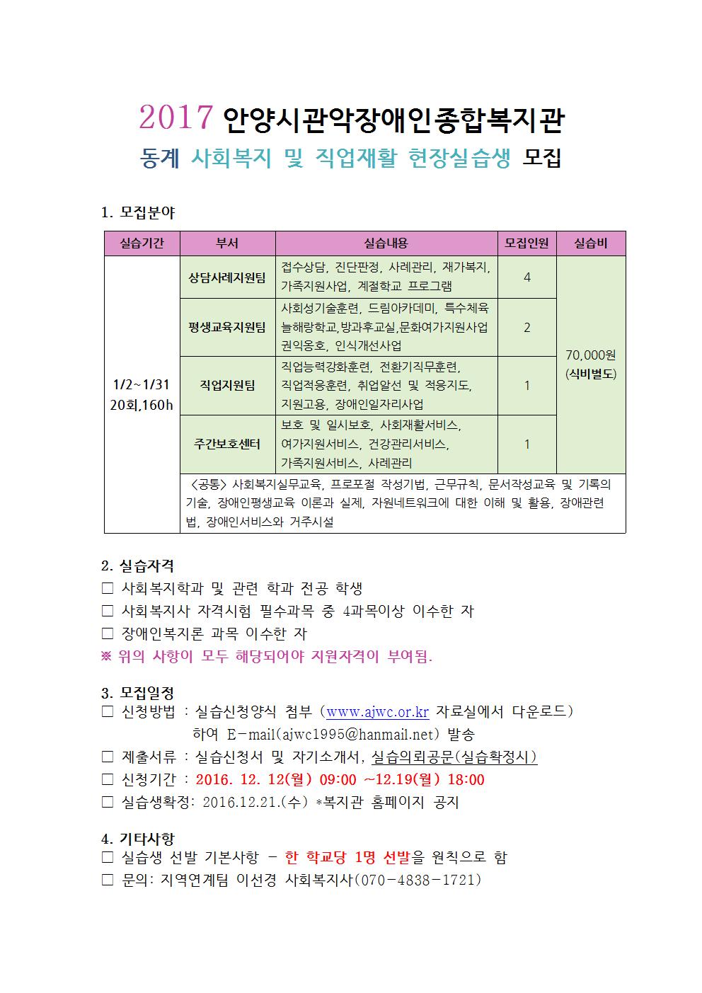 2017년 동계 사회복지현장 실습생 모집 > 공지사항