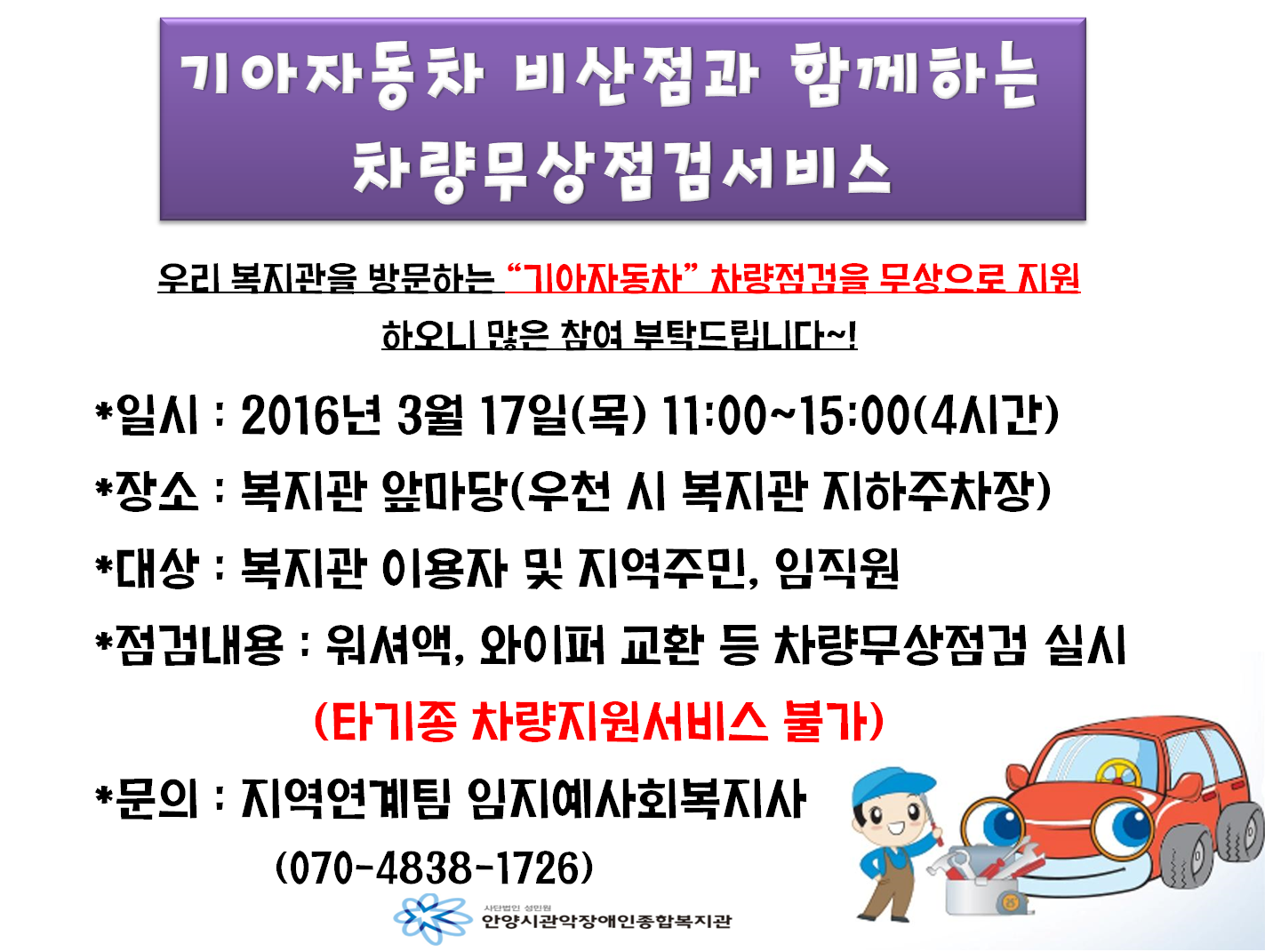 2016년 3월 17일(목) 기아자동차 차량무상점검 서비스가 진행됩니다!