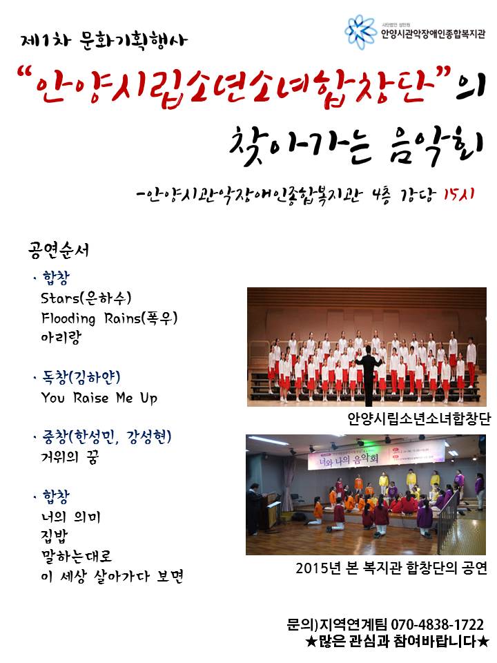 "안양시립소년소녀합창단"과 함께하는 찾아가는 음악회에 많은 관심 부탁드립니다.