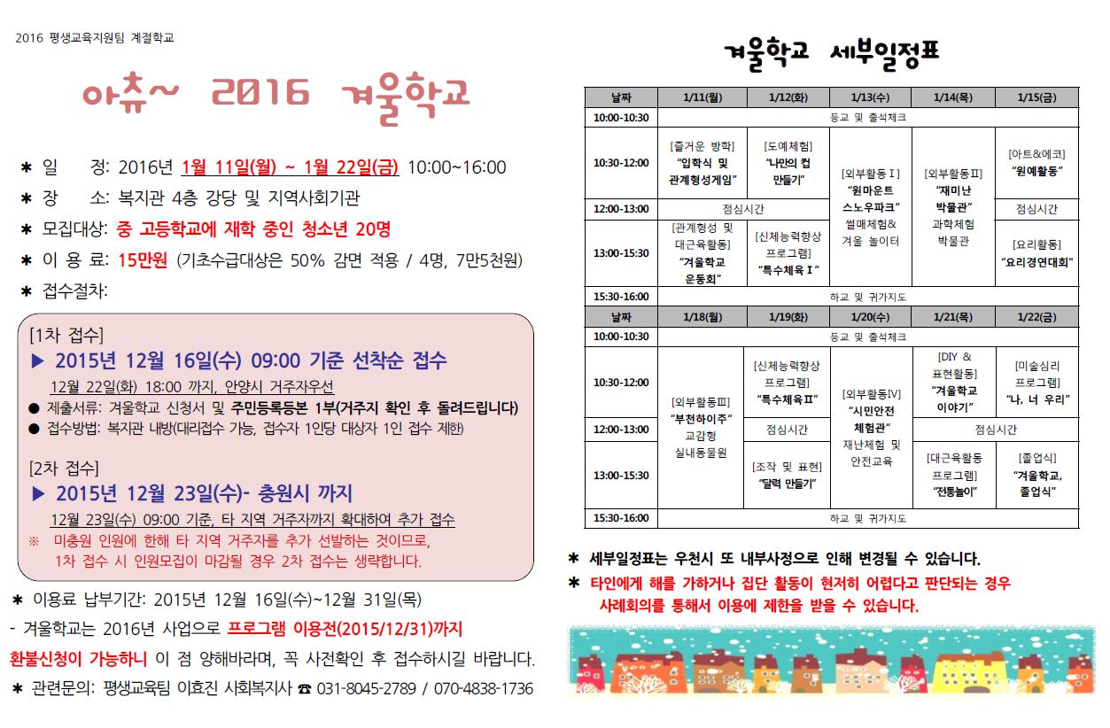 2016년 겨울학교 이용자 모집