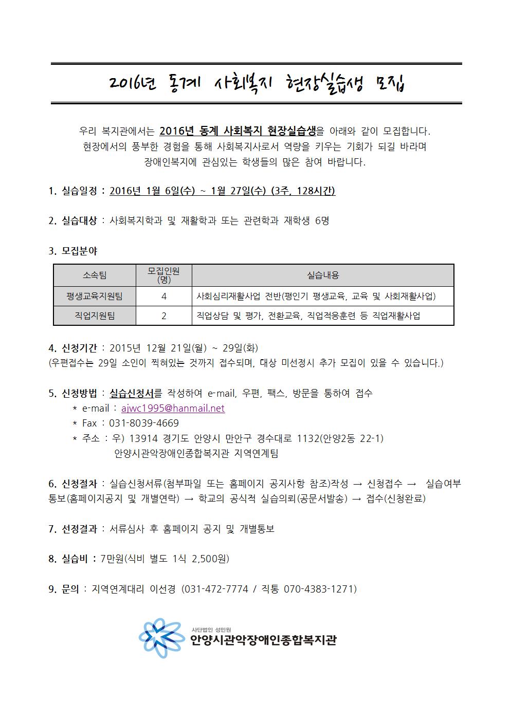 실습신청서를 다운받아 복지관 메일로 보내주세요