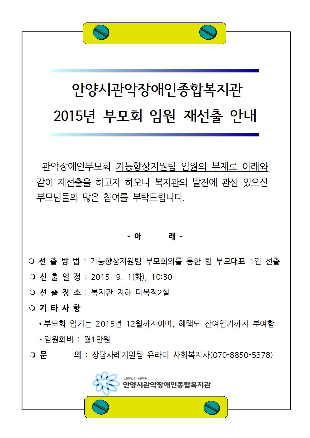 2015년 부모회 임원 재선출 안내 > 공지사항