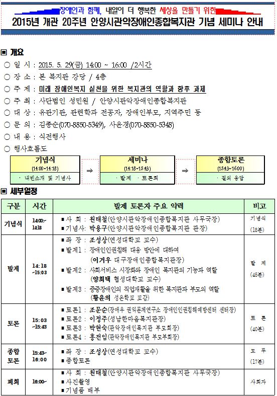 20주년 기념행사 세미나 안내