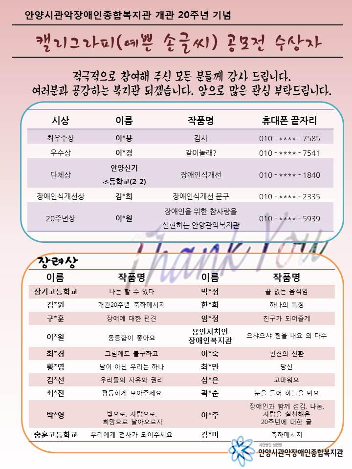안양시관악장애인종합복지관 개관 20주년 기념 공모전