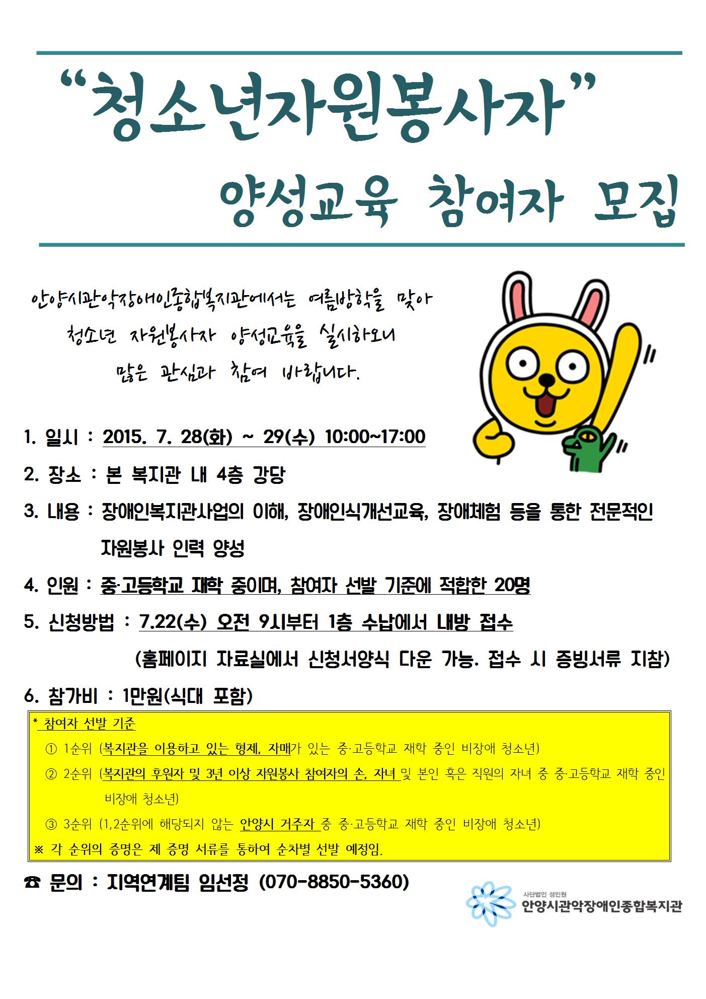 2015년 청소년자원봉사자 양성교육 실시안내 > 공지사항