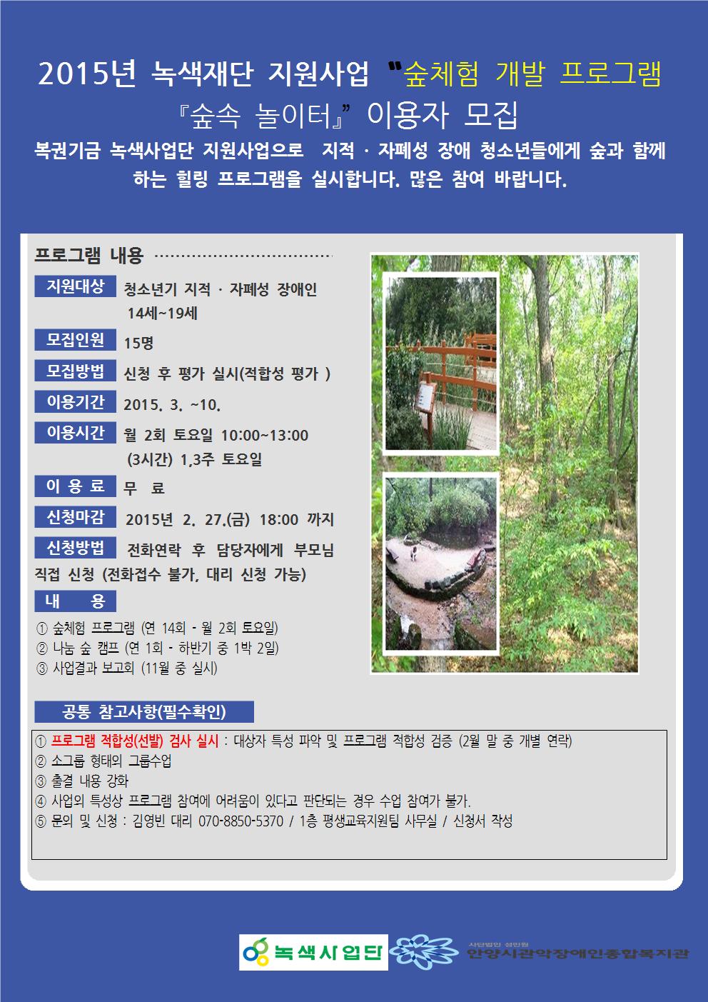 숲체험 개발프로그램 "숲속놀이터" 이용자를 모집합니다.