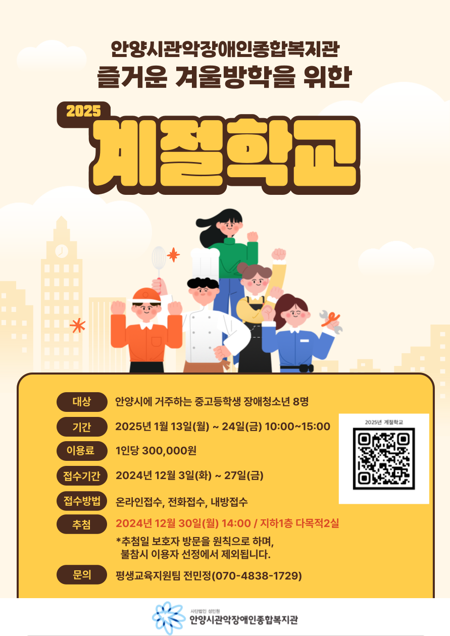 문의사항은 안양시관악장애인종합복지관 평생교육지원팀 전민정사회복지사로 연락바랍니다 070-4838-1729