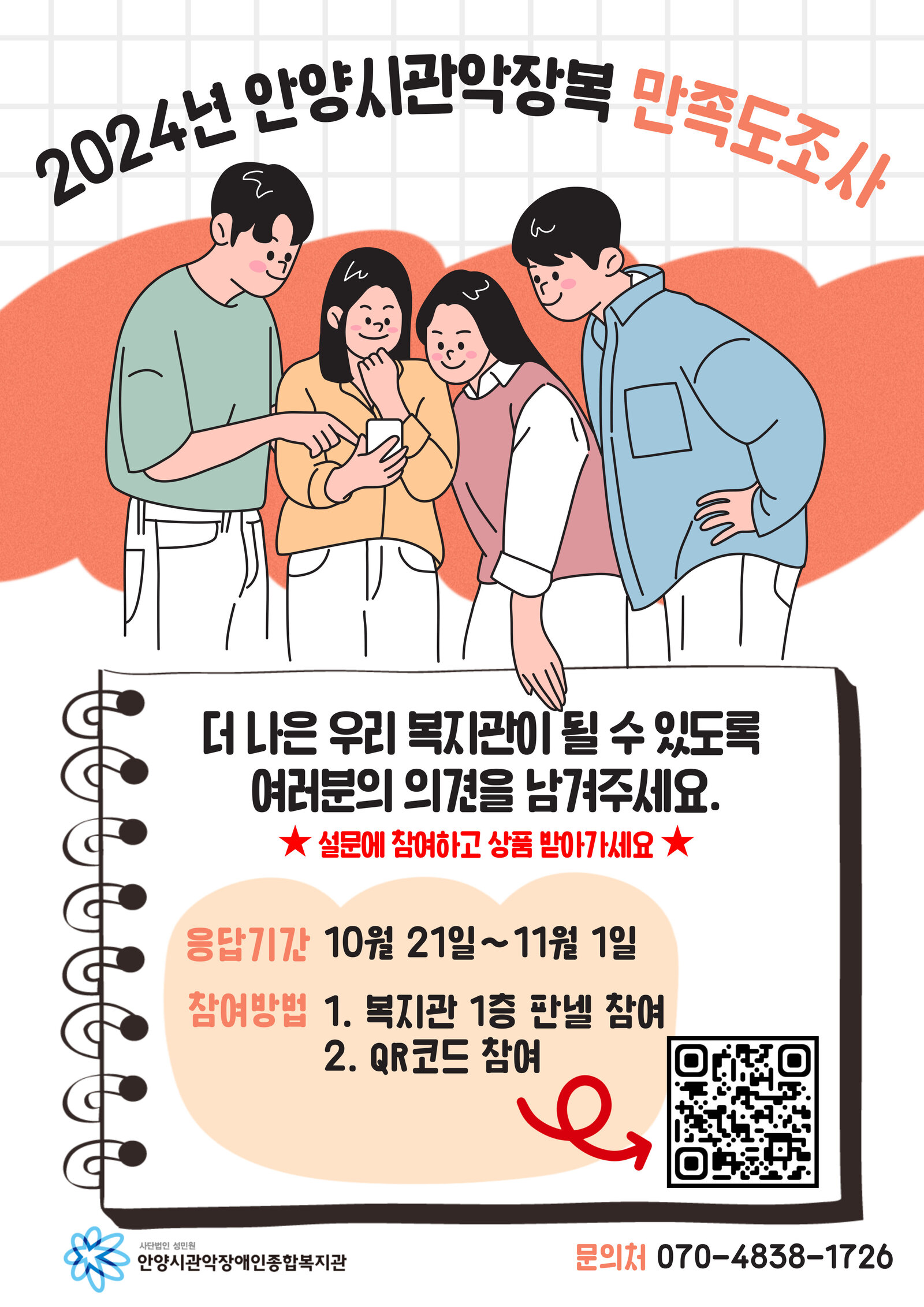 2024년 안양시관악장애인종합복지관의 만족도조사를 진행합니다.